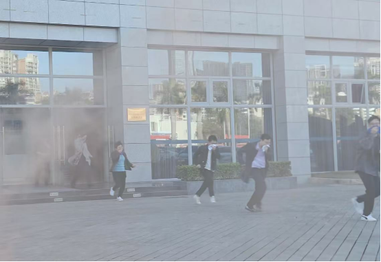 “報(bào)告!三樓發(fā)現(xiàn)火災(zāi)警報(bào)!”按照演練方案,工作人員在市水務(wù)調(diào)度中心三樓“發(fā)現(xiàn)”火情,并按下消防報(bào)警按鈕。隨后消防控制室工作人員向演練指揮組長報(bào)告火情,啟動(dòng)市水務(wù)調(diào)度中心大樓消防應(yīng)急預(yù)案。消防控制室立即拉響大樓消防警報(bào),滅火消防小組火速趕往起火點(diǎn)進(jìn)行滅火。與此同時(shí),在濃烈的煙霧和刺耳的警報(bào)聲中,各樓層員工迅速從樓梯有序疏散至一樓空曠地方。