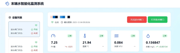 以往,水質監(jiān)測多靠人工定期抽檢,就像“盲人摸象”,只能捕捉階段性情況。而新系統徹底打破了這種局限,它能對小區(qū)管網末梢水的余氯、濁度、pH值、溫度等關鍵指標,進行24小時不間斷在線“盯防”,數據實時同步至監(jiān)控平臺,實現了從“階段性抽查”到“全時段守護”的質變。