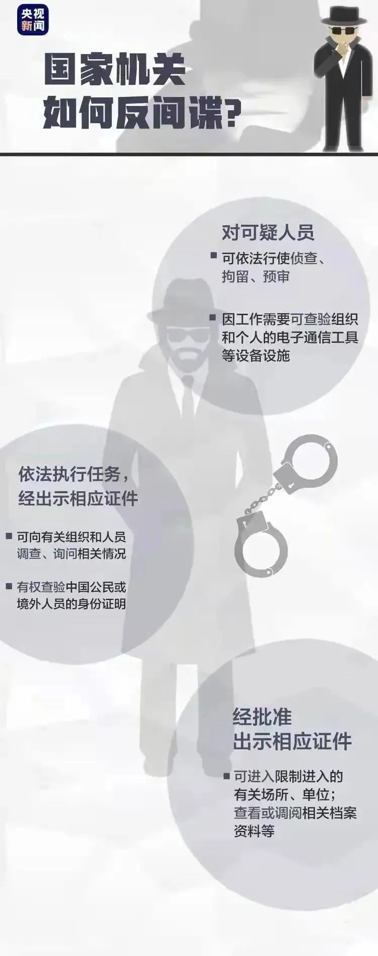 《反間諜法》既為反間諜工作提供了最基本的法律依據(jù),又為在隱蔽戰(zhàn)線貫徹落實總體國家安全觀作出了具體的制度規(guī)劃,進(jìn)一步推進(jìn)我國反間諜工作的規(guī)范化、制度化和法治化,為全面推進(jìn)依法治國,發(fā)揮不可替代的重要作用。讓我們通過下面一組圖全面了解《反間諜法》。