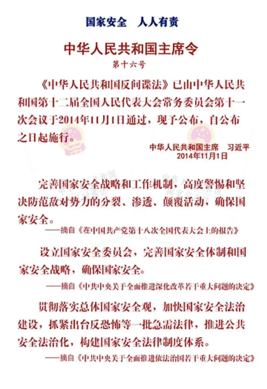 國家安全無小事。作為國民的一份子,我們更應(yīng)該提高自己的警惕和防范意識,認(rèn)真學(xué)習(xí)《中華人民共和國反間諜法》相關(guān)知識,為維護(hù)國家安全做出努力,為維護(hù)社會的長治久安做出貢獻(xiàn)。