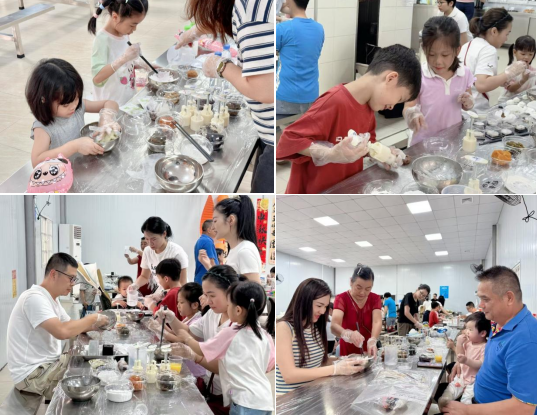活動現(xiàn)場,22組家庭化身為“美食工匠”,開啟了冰皮月餅DIY之旅,從揉面、包餡到壓模,親子間的默契協(xié)作下,一枚枚印有“平山自來水廠”“城南水塔”“水泥船泵房”等公司發(fā)展史上標(biāo)志性建筑物圖案的月餅在掌心悄然成型。在活動的另一側(cè),二十余盞創(chuàng)意燈籠正悄然點(diǎn)亮,職工家庭以公司發(fā)展歷程為靈感,利用材料包中的竹篾、彩筆等素材,設(shè)計出“惠東供水60周年”“中秋快樂”等特色燈籠,將對企業(yè)發(fā)展的美好祝福融入其中。最終,所有家庭自制的月餅和燈籠作為活動紀(jì)念品被帶回家中,更成為傳遞企業(yè)溫情的獨(dú)特載體。